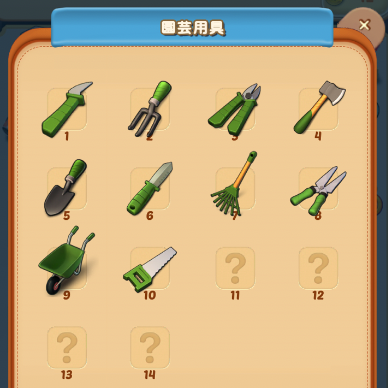 園芸用具箱 レベル4以降から園芸用ナイフ レベル1〜3が入手出来る。